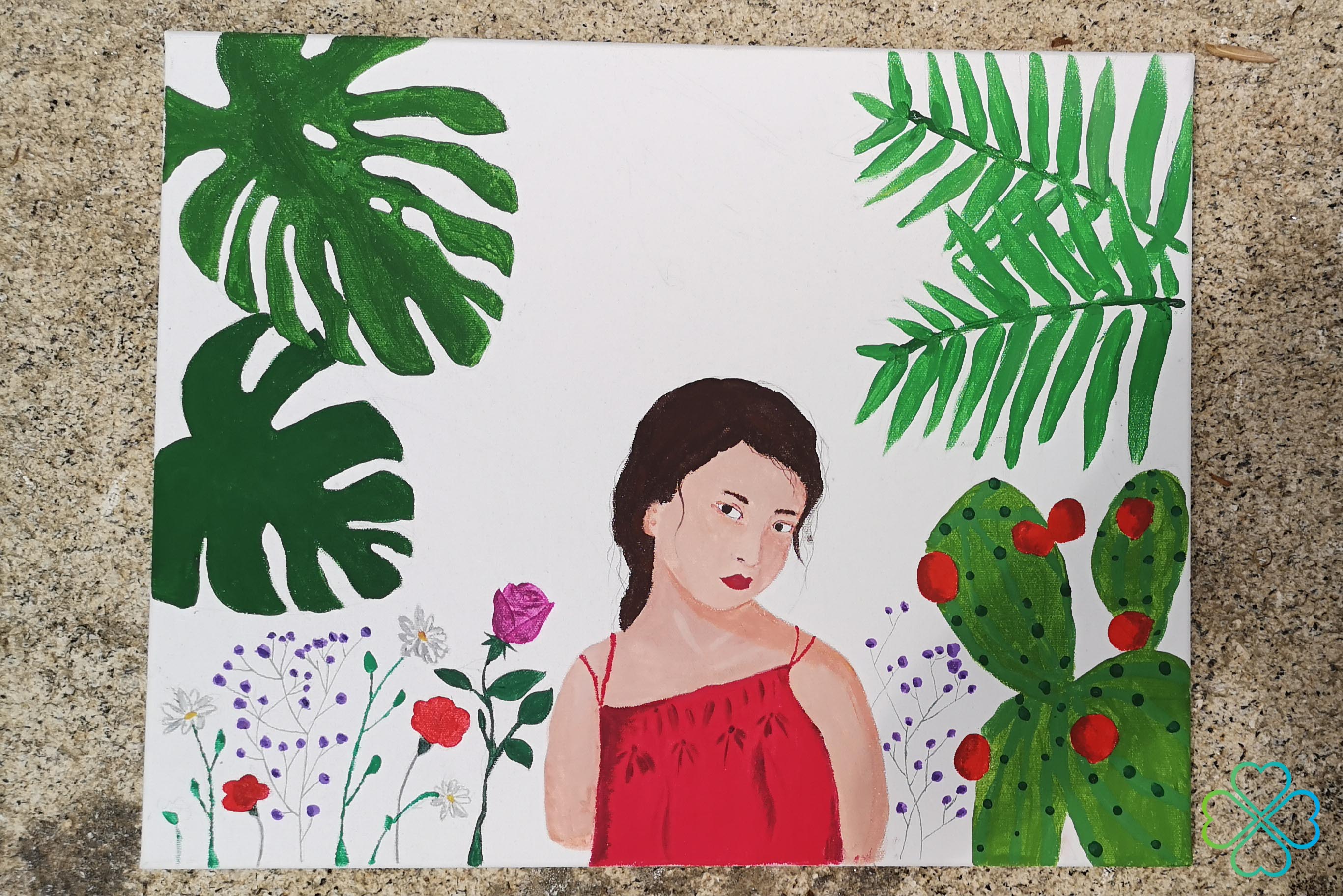 Inspirados por diferentes artistas contemporâneos, os alunos do 9.º ano realizaram uma pintura a partir de uma imagem sua. Foram exploradas várias técnicas para desenhar e pintar a figura e o seu fundo. Foi com grande entusiasmo que viram uma obra de arte a nascer.