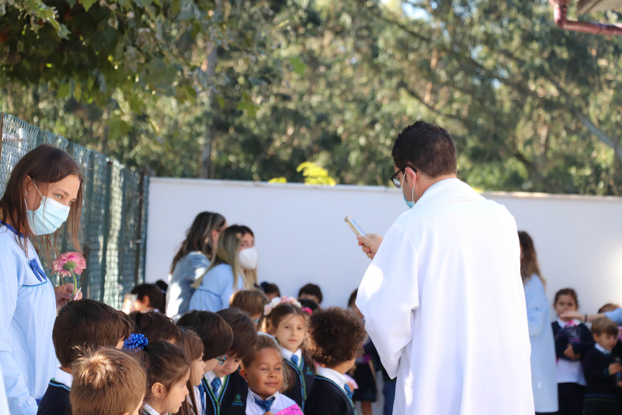 Durante a manhã, os alunos dos vários ciclos de ensino cantaram os parabéns e ofereceram flores como símbolo de consideração, respeito e gratidão. Ainda durante este dia, tivemos a visita do Sr. Padre David, que abençoou todos os nossos alunos ao som da “Oração do Estudante”, de São Tomás de Aquino.