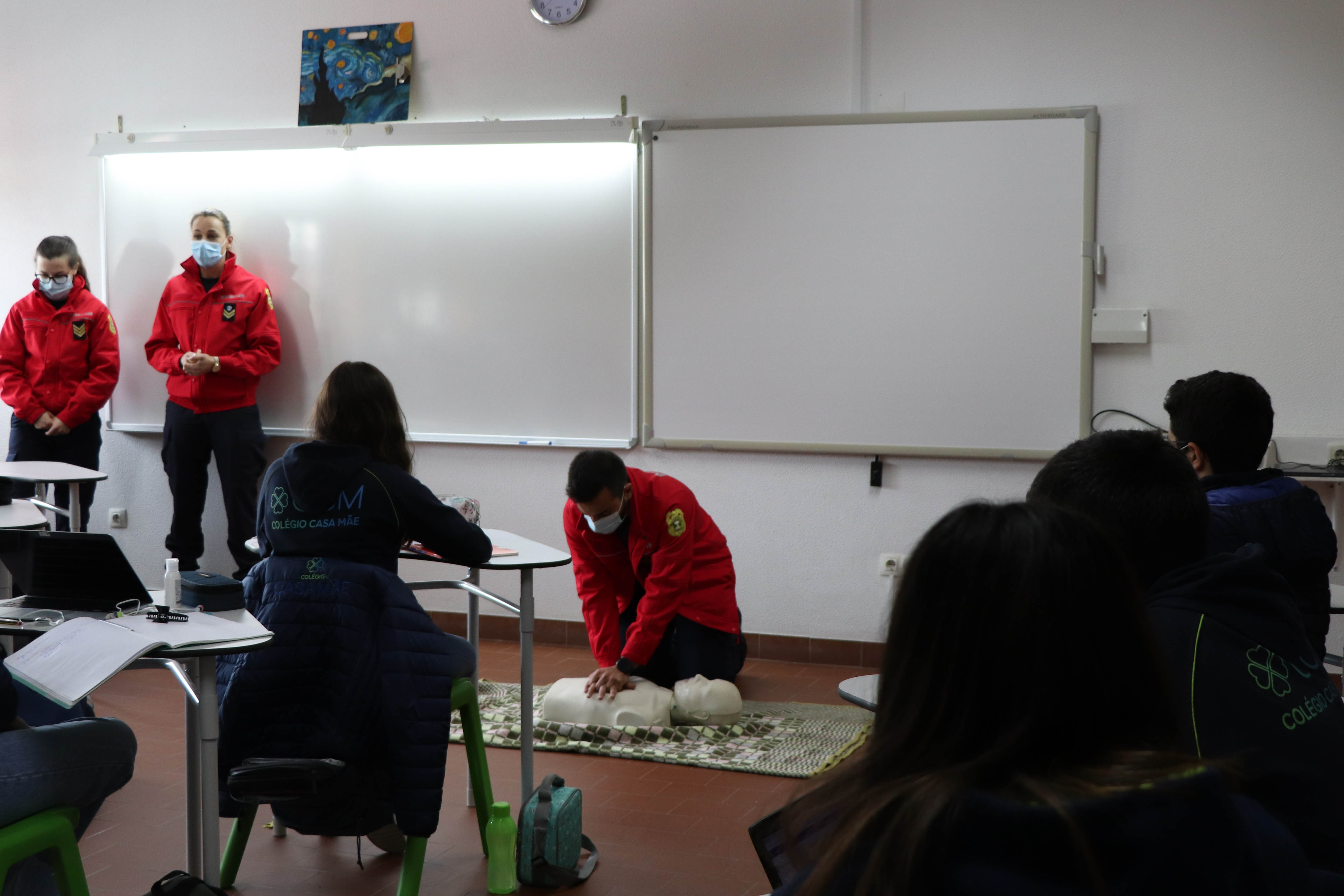 As turmas de 9.º ano do Colégio Casa Mãe, na disciplina de Ciências Naturais, participaram numa sessão de Suporte Básico de Vida. Os alunos puderam compreender a importância do ABC (Airway, Breathing and Circulation) e aplicar manobras simples de socorro na obstrução da via aérea, como as palmadas interescapulares e a manobra de Heimlich. Agradecemos a disponibilidade dos Bombeiros Voluntários de Baltar, que orientaram esta ação formativa.